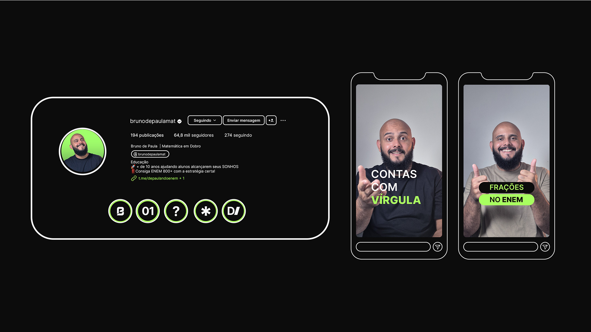 Quando o Bruno me procurou, seus vídeos já estavam viralizando, mas ele ainda não sabia como transformar essa audiência em algo maior. Ele queria ajudar mais pessoas a vencerem seus traumas com a matemática, mas sem perder o que sempre foi mais importante para ele: o impacto individual.