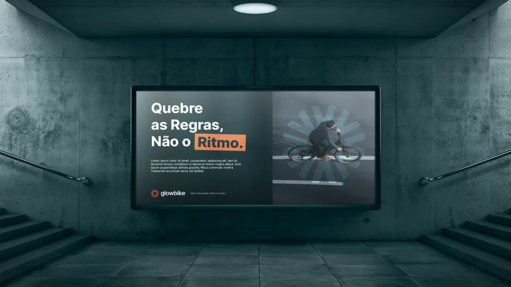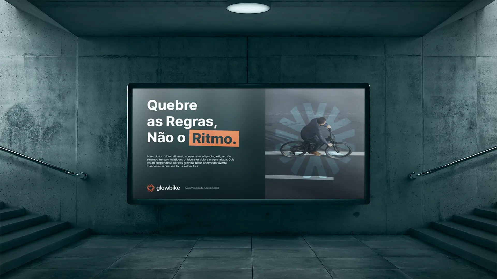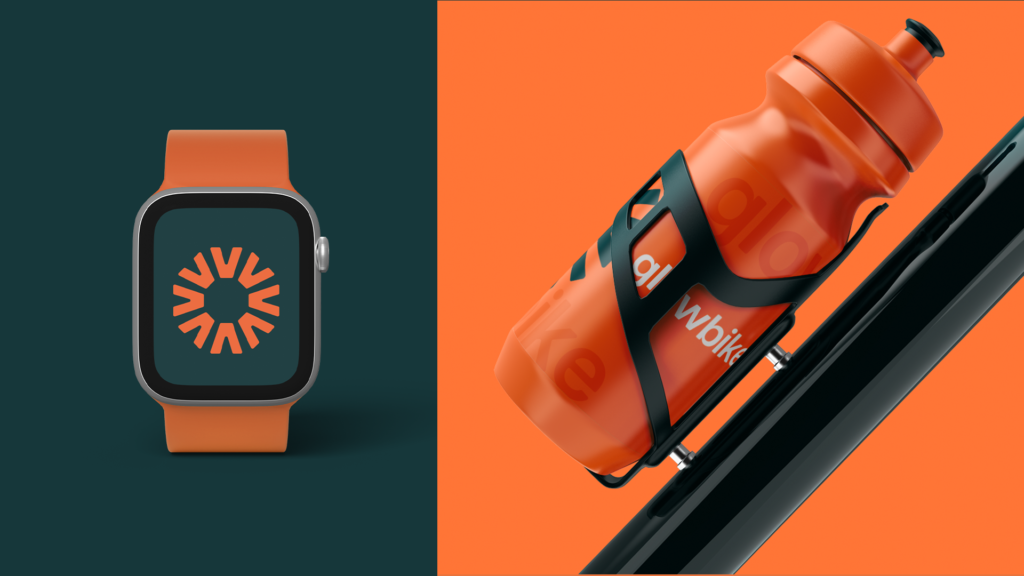 Com isso em mente, pensei em um icone que lembrasse uma roda de bicicleta, criando uma fácil identificação com o produto. Para o nome optei por uma fonte Sans Serif, que compoe o logotipo de forma versátil e moderna, com a tipografia em minusculas e o espaçamento ajustado para trazer a percepção de uma conexão mais próxima e humanizada.